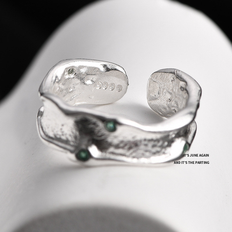 Desigual熔岩系列肌理感S925纯银戒指女ins风开口食指戒手饰品