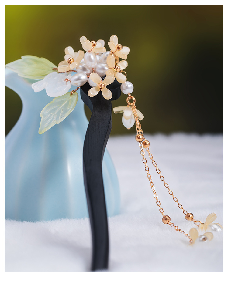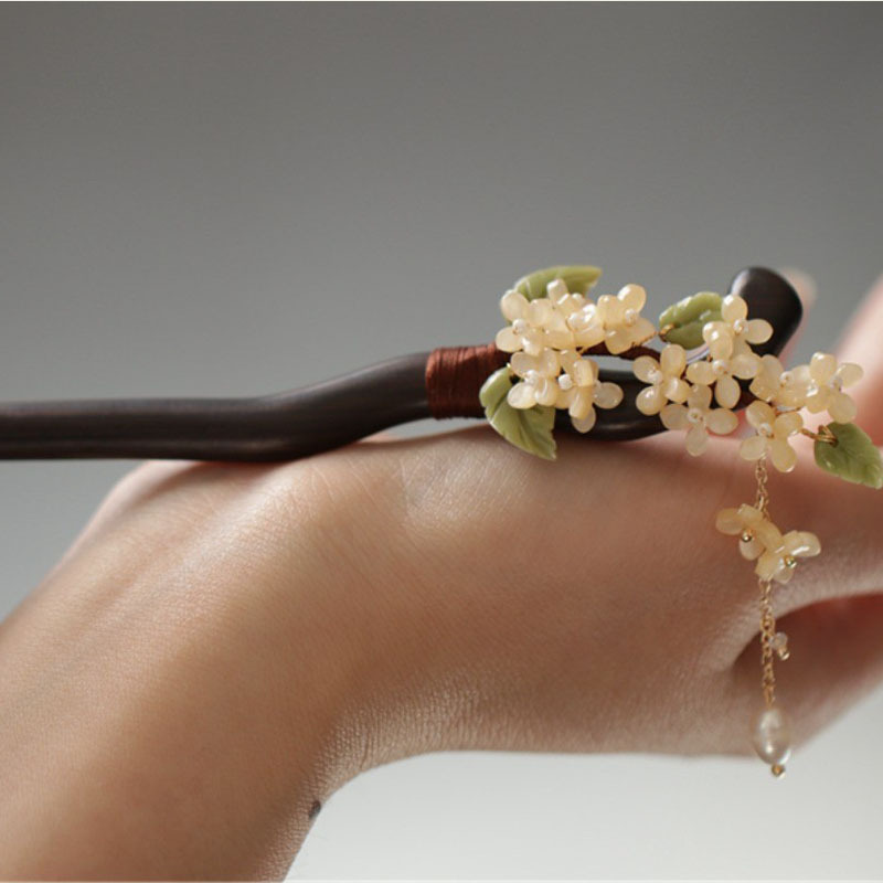 Desigual新国风系列木簪盘发流苏步摇簪子桂花发簪汉原色头饰配饰